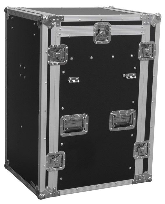 Este flightcase esta fabricado con madera Plywood laminada de canteada en aluminio y con railes de montaje en frontal y trasera. Un rail inclinable en la parte superior permite alojar una mesa de mezclas y las tapas llevan enganches para utilizarse como mesa. Facil transporte con gran resistencia.