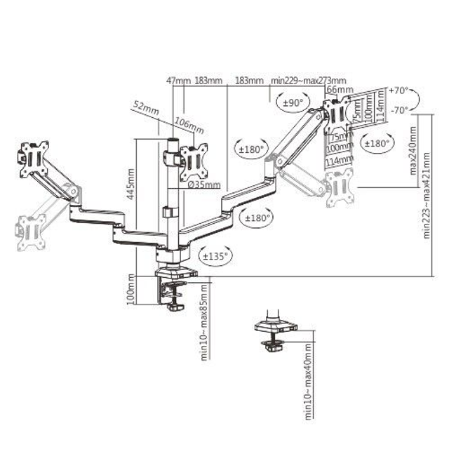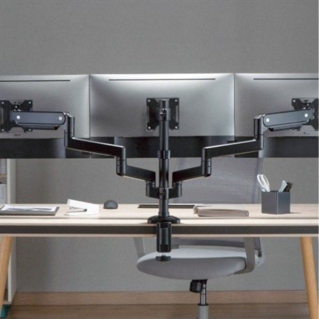 The MAD-G Series Gas Spring Monitor Arms are stout in appearance and robust in performance. At the touch of a finger, the high-quality gas spring mechanism provides easy monitor arm movements, including up, down, extending and retracting to achieve the absolutely best ergonomic position. Removable VESA plates provide quick and easy installation. Built-in cable management and a pass through for USB cables in the base ensures a clean and organized workspace. VESA compatible with 75x 75 and 100x 100.